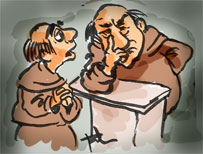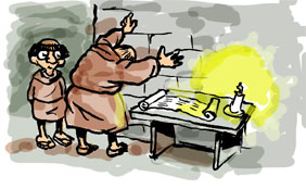 He notices, however, that all of the monks are copying from copies, not from the original manuscript. So, the new monk goes to the head abbot to question this, pointing out that if someone made even a small error in the first copy, it would never be picked up! In fact, that error would be continued in all of the subsequent copies.