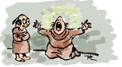The head monk, says, 'We have been copying from the copies for centuries, but you make a good point, my son.'